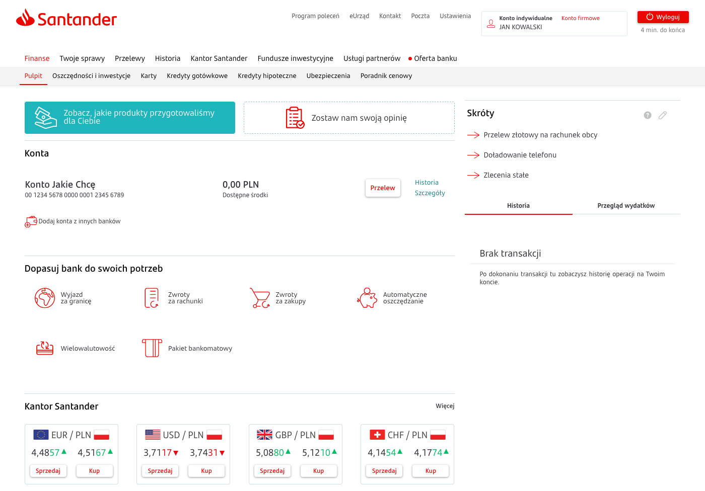 - Historia i kontrola wydatków - podgląd operacji oraz bieżące monitorowanie salda i transakcji.